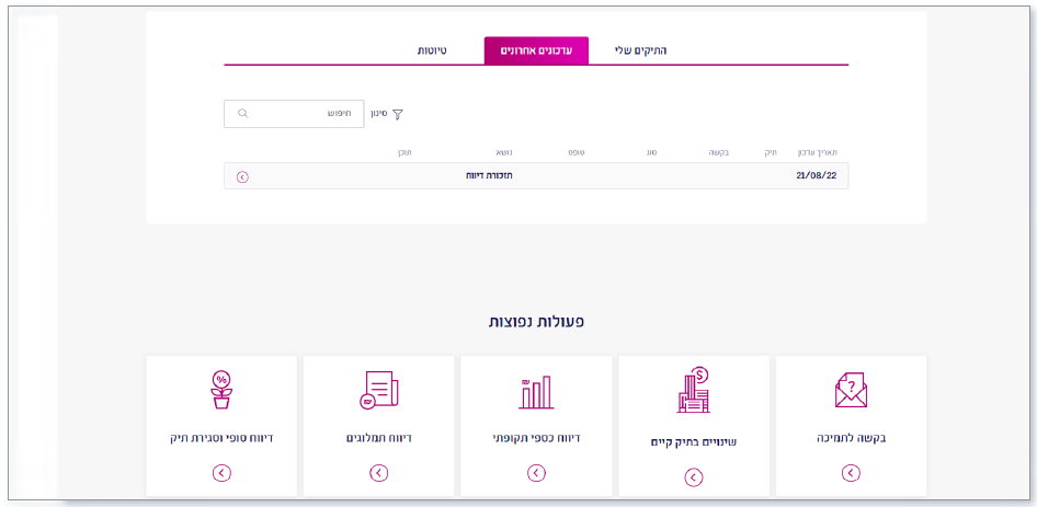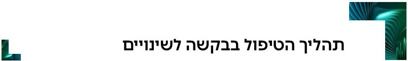את הבקשה לשינויים יש למלא בטופס המקוון הנמצא באזור האישי. בקשות לשינויים להגיש רק לאחר הפעלת התיק (לאחר קבלת כתב אישור).