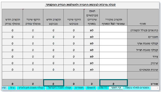 - דנה חסיד הפסיקה לעבוד בחברה ולכן יש למלא את כל הנתונים של דנה המופיעים בצבע לבן (טור I-B). תאים שלא ימולאו, יגרמו לבעיה בסכימה ואי אפשר יהיה לבדוק את הבקשה.