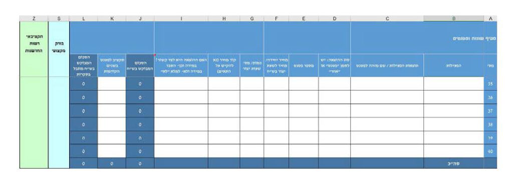 • יש למלא את השורות לפי הסדר. דילוג על תאים עלול לגרור שורות לא מחושבות