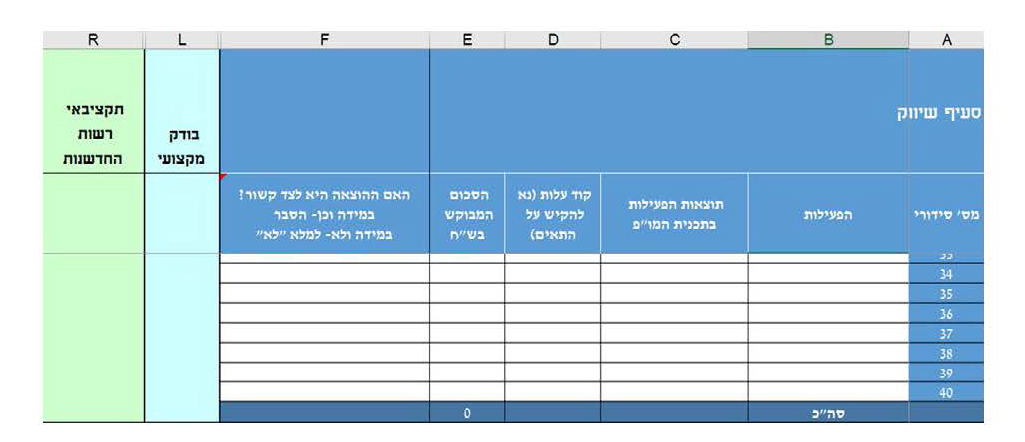 המדריך בנוי לפי סדר הגיליונות שבקובץ תקציב הבקשה.