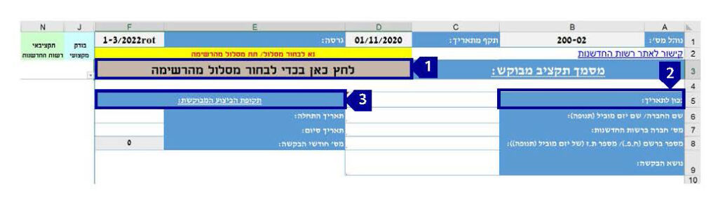 • יש לבחור את סוג המסלול בו מוגשת הבקשה (אחרת לא ייפתחו שאר הגיליונות הרלוונטיים במסלול הנבחר) 1