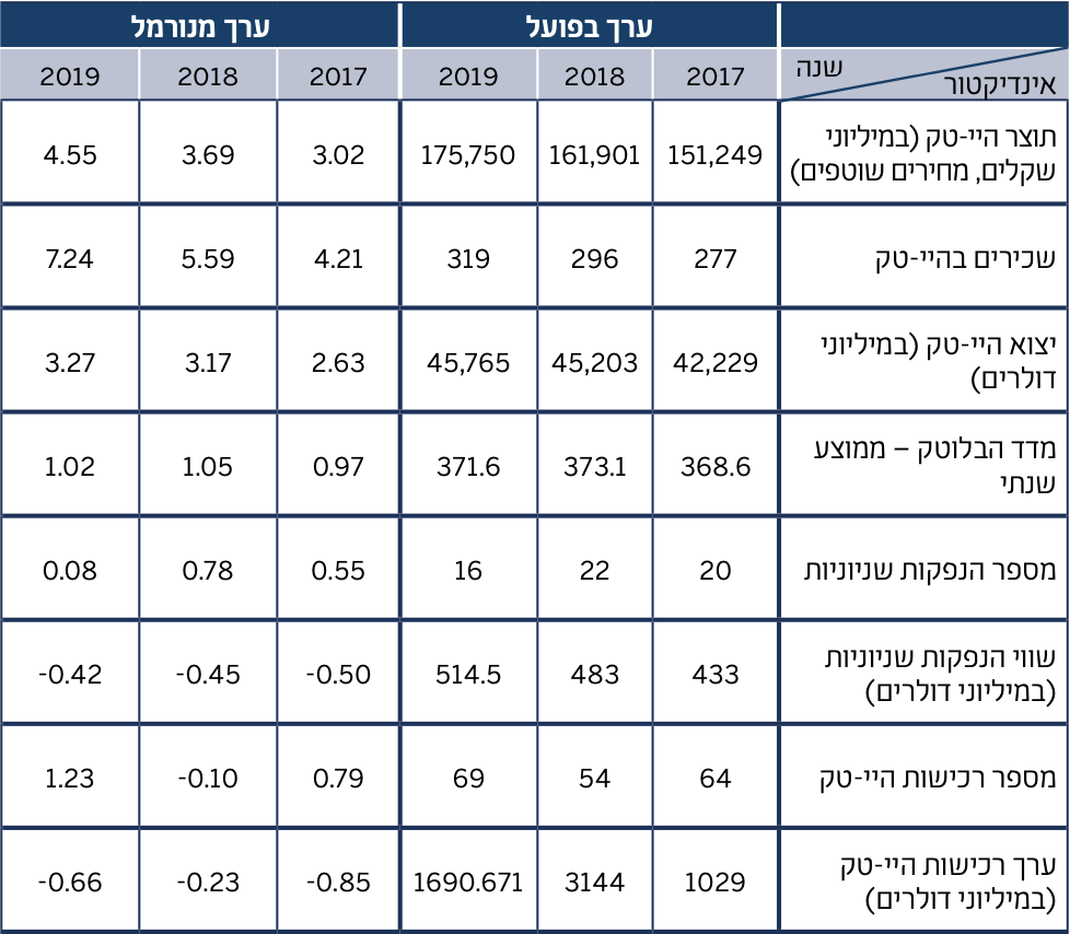 נספח א׳: תוצאות האינדיקטורים המרכיבים את מדד ההיי-טק