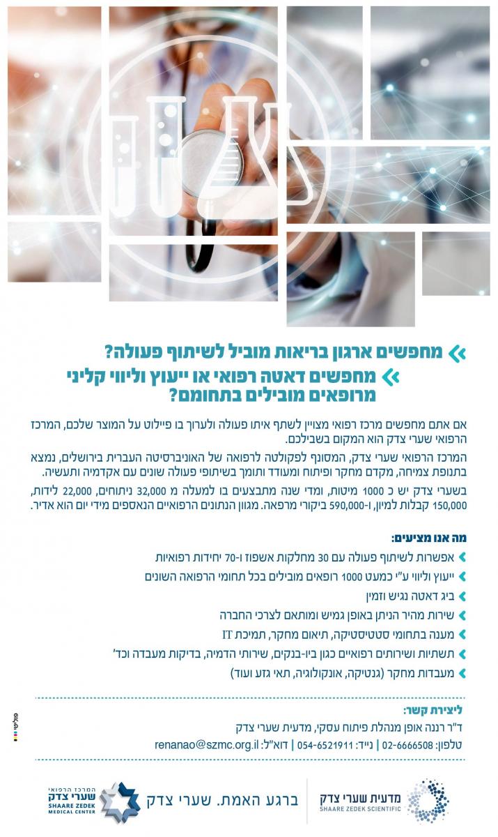 רשימת ארגוני בריאות המעוניינים בשיתופי פעולה עם חברות, יזמים וחוקרים