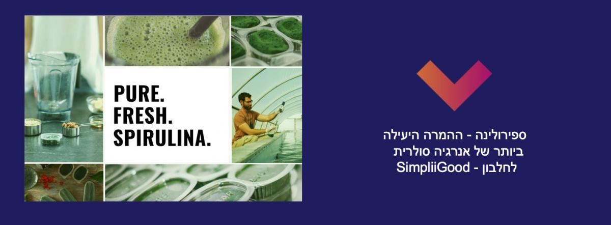 סימפלי גוד (SimpliiGood) הוקמה בישראל לפני כשמונה שנים והיא החברה היחידה בעולם שיודעת לגדל ספירולינה טרייה בהדירות גבוהה של יותר מ-97%. את הספירולינה מייצרים בשתי חוות, אחת בתל מונד והשנייה בערבה, הנשלטות מרחוק על ידי מרכז אחד.