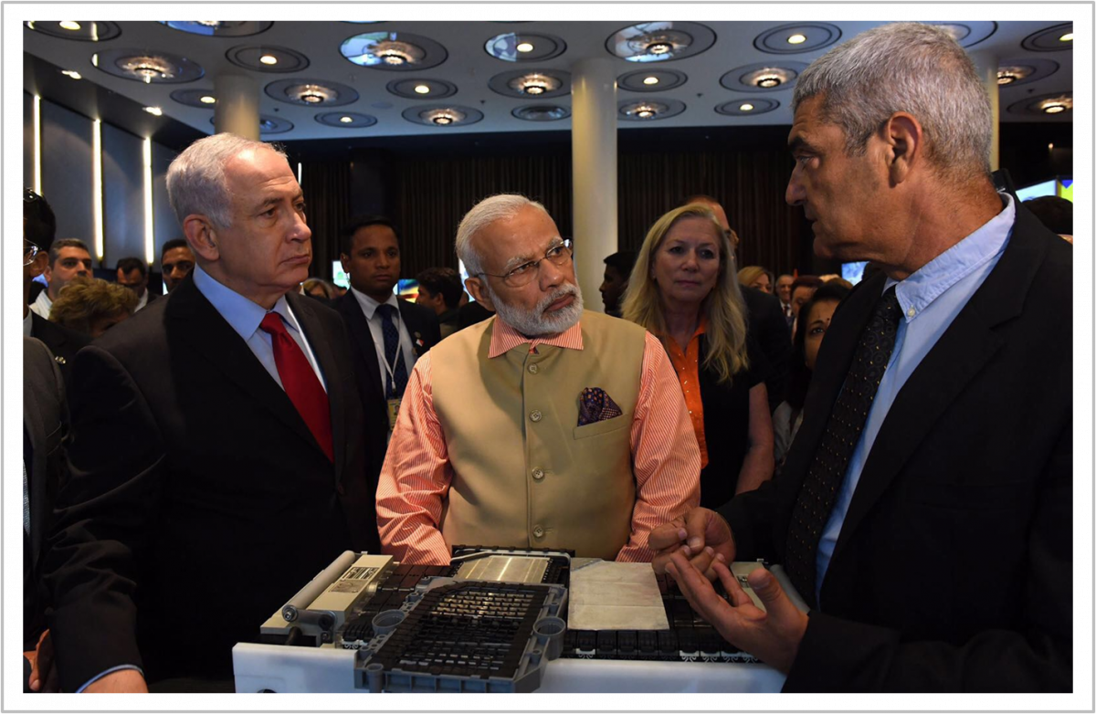אם המחיר לאנרגיה החלופית הוא תחרותי לגז ולדלק צריך שיהיו מובילים למהפכה הזאת. לכן אנחנו נמצאים בקשר עם מדינות כמו הודו וסין, שסובלות מזיהום אוויר ורוצות לשנות את המצב. (בתמונה, מימין: אביב צידון, נרנדרה מודי, ראש ממשלת הודו ובנימין נתניהו ביולי 2017. קרדיט: GPO)