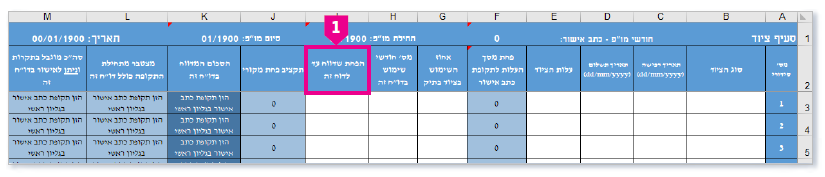 1. על החברה למלא את התאים הלבנים: טור B-I (ללא תא F). תאים שלא ימולאו, יגרמו לאי סכימה בתאים המסכמים.