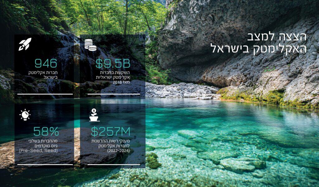 שינויי האקלים מציבים בפנינו אתגר גלובלי משמעותי המחייב תגובה נחרצת ודחופה, ובמקביל נושא בחובו הזדמנויות כלכליות משמעותיות לעתיד. אירועי מזג אוויר קיצוניים – כדוגמת השריפות שפרצו לאחרונה בקליפורניה – גורמים לנזקים הנאמדים במאות מיליארדי דולרים. תוך כך, יותר ויותר חברות מחויבות כיום להפחתה משמעותית בשיעורי הפליטות של גזי חממה, המניע בתורו תנופה רבה בחדשנות הטכנולוגית בתחום האקלים1Science Based Targets initiative. (2024). Companies taking action. Retrieved March 23, 2025, from sciencebasedtargets.org. מדינת ישראל – הידועה בזכות רוח החדשנות החלוצית שלה – ממקמת את עצמה כמדינה מובילה בתחום אקלימטק.