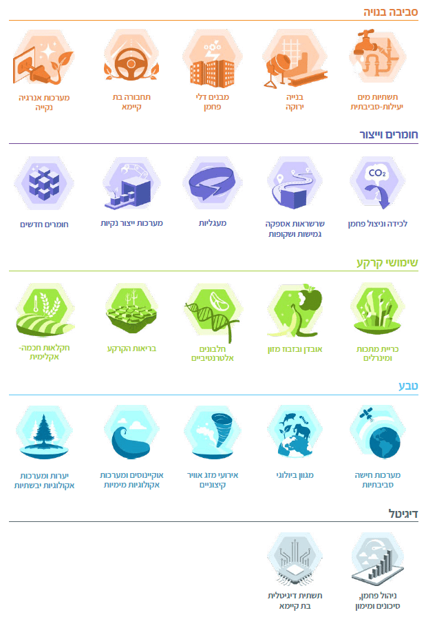 טבלה 1 | תחומים עיקריים ותחומי משנה בטכנולוגיות אקלים