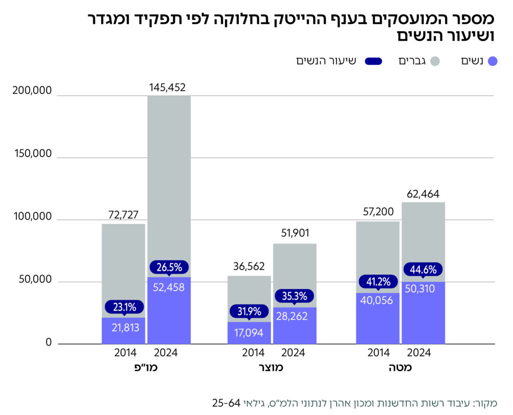 - קצב הגידול הגדול ביותר: מספר הנשים בתפקידי מו"פ גדל ב-140% תוך עשור