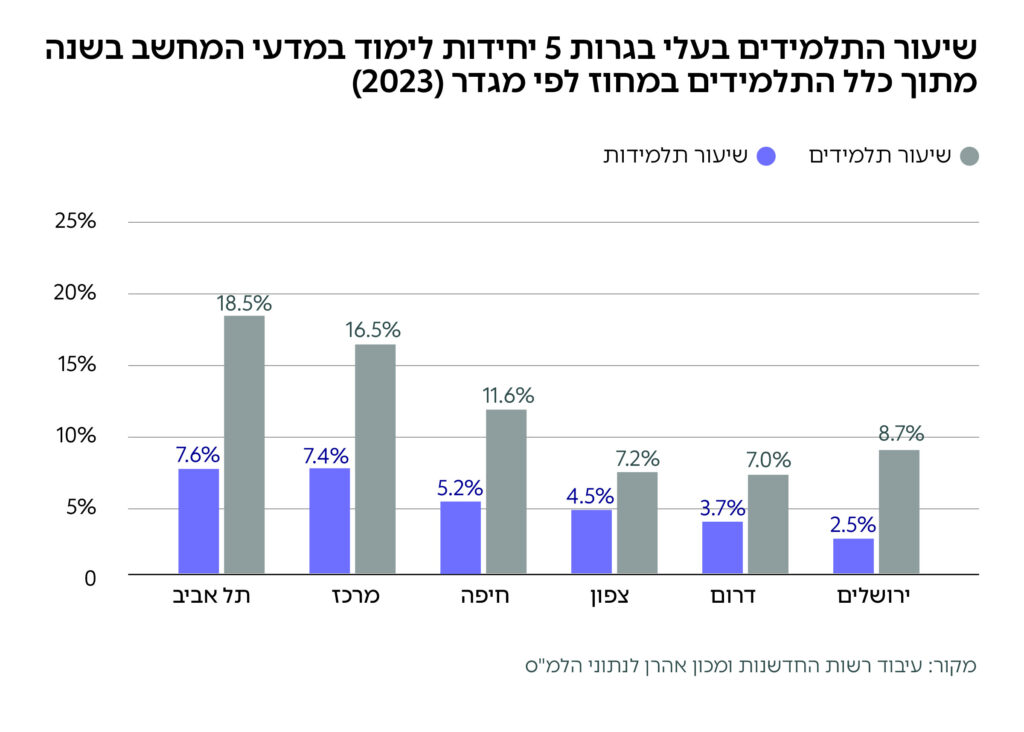 שיעור בעלות הבגרות הגבוה ביותר בארץ במדעי המחשב – במחוזות מרכז ותל אביב