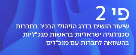תחום שיש בו פער משמעותי הוא בכל הקשור לקידום נשים לתפקידי ניהול בחברות ההייטק. מהנתונים עולה כי כ-17% בלבד מהמכהנים בתפקידי ניהול בכיר (VP או C-Level) בחברות הייטק ישראליות פרטיות הן נשים – כמחצית משיעור התעסוקה שלהן בתחום. כלומר, נשים פחות מתקדמות בניהול יחסית לחלקן בענף. גם בתחומים בהם ייצוג הנשים הכולל גבוה יותר והם שיוויוניים יותר – שיעורן צונח בתפקידי הניהול הבכיר. בדיקה נוספת העלתה כי בחברות שבראשן מנכ״לית – שיעור הנשים בדרג הניהולי הבכיר הוא כפול בהשוואה לחברות שמובלות על ידי מנכ״לים, והוא דומה לייצוג הכולל שלהן בחברות.