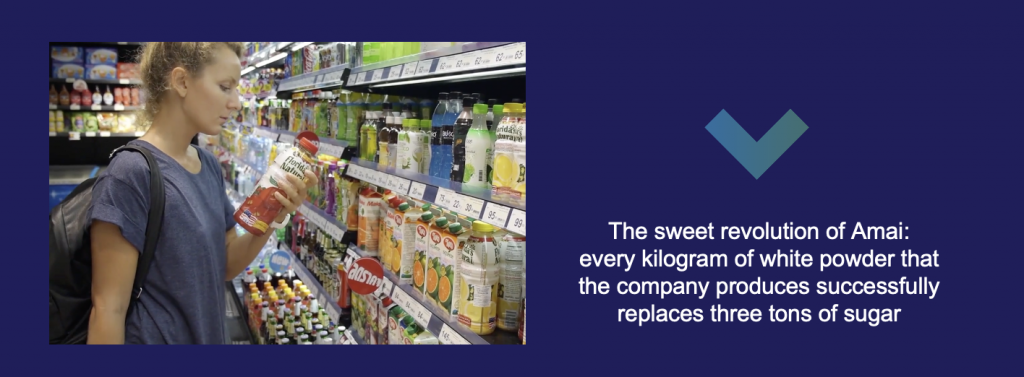 There are eight different categories of sugar reduction but none of them really succeed in meeting the criteria to which Amai aspires in order to achieve a sugar reduction of more than 30% – taste, health, low cost, and product suitability. Some of today’s sweeteners break up in high temperatures and acidity while others are not healthy and not tasty. Lastly, but not less important, is that the substitute must be environmentally friendly.