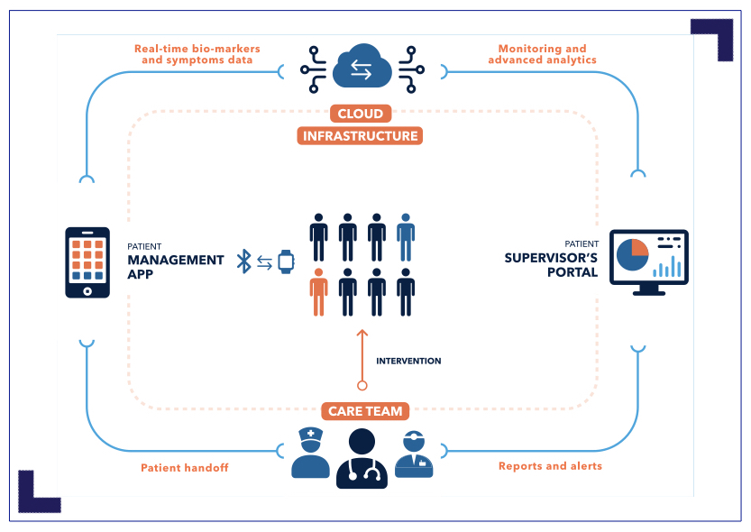 “By contrast”, says Dr. Eisen, “our platform performs the monitoring both automatically and continuously: a patient is discharged from hospital and continues receiving the same monitoring level of treatment in his home as he did in the hospital. If his condition worsens, the system alerts the medical team and informs the patient what to do.”