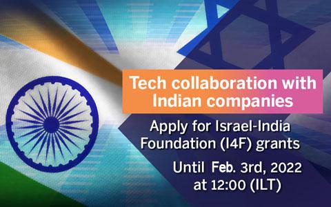 India-Israel Industrial R&D and Technological Innovation Fund (I4F) invites Israeli technological companies to submit joint proposals for industrial R&D and pilot projects with Indian companies.
