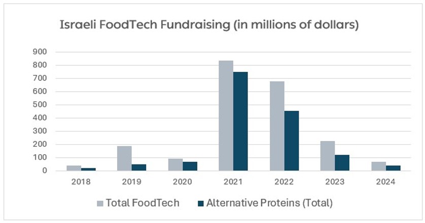 Compared to the global trend in FoodTech fundraising in 2024, Israel’s investment volume decline has been significantly steeper.