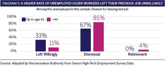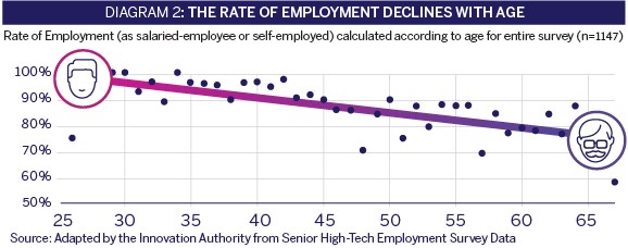 The second reserve of personnel is senior employees (from approximately age 45 and upwards) in the high-tech industry who, have difficulty maintaining their positions in the high-tech labor market. This issue will be discussed below based on the results of a unique survey examining the employment of senior high-tech workers, conducted by the Innovation Authority in conjunction with the Association of Engineers.