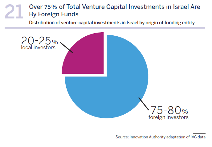 It is important to note that even among the local entities responsible for investments in startups, primarily Israeli venture capital funds, most of the capital is raised overseas. In practice therefore, a higher ratio of R&D in Israel is funded by foreign investors than is reflected in the global comparison.