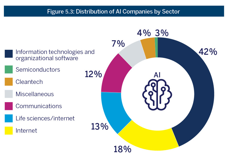 In recent years, Israeli high-tech has heldMay:leading global position in the field of AI. Israel is now among the world’s top three countries operating in the field of AI, following China and the US.3The Global Artificial Intelligence Landscape, Asgard Moreover, according to research company CB Insights, Israel ranks second, after the US, in its number of leading AI start-ups.4CB-Insights top startups ranking It also ranks high in the number of companies that develop infrastructure technologies for AI such as special- purpose chips, infrastructure algorithms, and complex systems for the acceleration of computing.5MMC Ventures & Barclays UK Venture, “The State of AI 2019: Divergence”, 2019