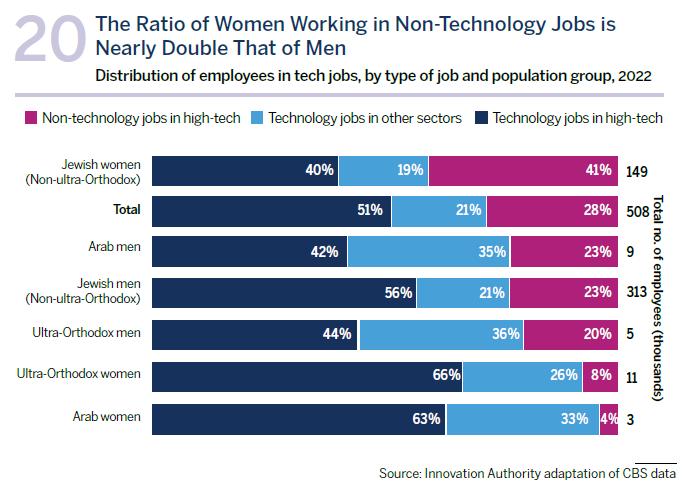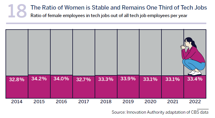 Women are still only a third of the industry, Arab and ultra-Orthodox societies only 5%