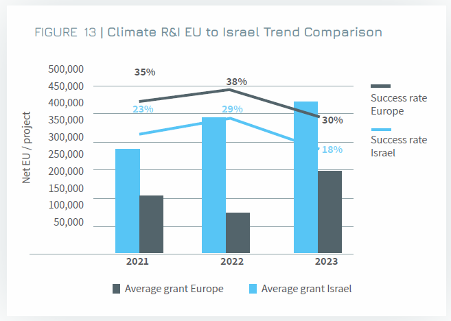 While success rates for Israeli applicants decreased from 29% in 2022 to 18% in 2023, this mirrored broader EU-wide trends driven by increased competition. Notably, Israeli beneficiaries secured higher-than-average funding per project, demonstrating efficiency in leveraging available resources to maximize impact.