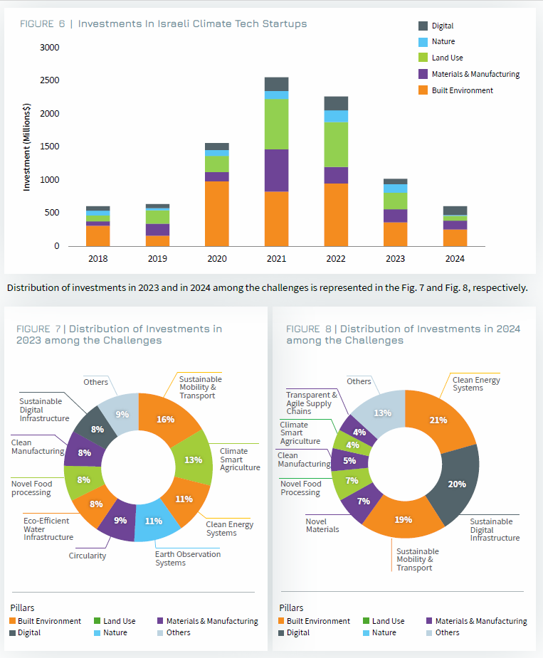 While climate tech investments in Israel declined from $2.27 billion in 2022 to $1 billion in 2023 and further to $613 million in 2024, overall early and growth-stage investments in Israel fell in similar percentage from $15.9 billion in 2022 to $6.9 billion in 2023, before rebounding to $9.6 billion in 2024. We expect to see a rebound back of investments also in Climate tech in 2025, given the flourishing activities of the ecosystem and presence of investors, later discussed in this chapter.