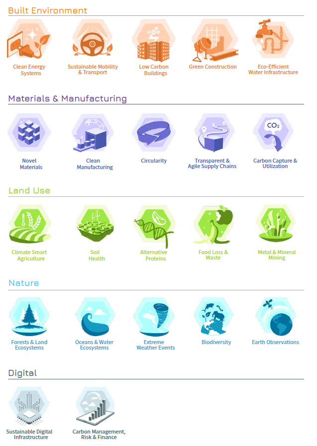 PLANETech’s Climate Challenge Map identifies the main challenges involved in greenhouse gas mitigation or climate change adaptation under five “fields.”