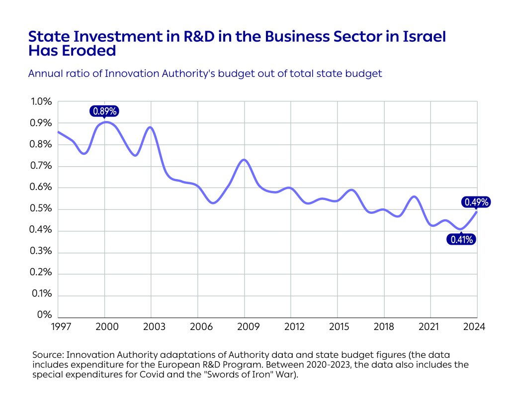 The State of Israel, as a years-long world leader in terms of investment in R&D as a percentage of GDP (over 6% of GDP), cannot afford to be satisfied merely with a level similar to the OECD average in a sector of such strategic national economic importance.