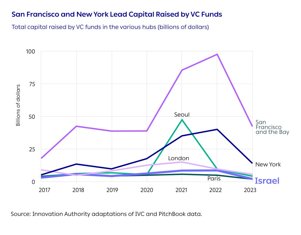 London is an example of Israel’s growing competition. As noted, the total capital raised for technology companies in that hub overtook that in Israel. London also overtook Israel in the venture capital funds segment. Between 2017-2023, a total of 27 billion dollars was raised for Israeli venture capital funds while in London this figure stood at 58 billion dollars.