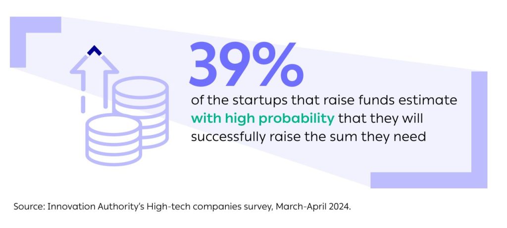 The survey reveals that during March-April, 61% of the companies engaged in fundraising estimated that there was a low probability of being able to successfully raise the capital they need, whereas 39% of the companies engaged in fundraising estimated that there was a high probability of being able to do so in the next funding round. In a survey conducted in November-December 2023, closer to October 7, this figure stood at 34%.