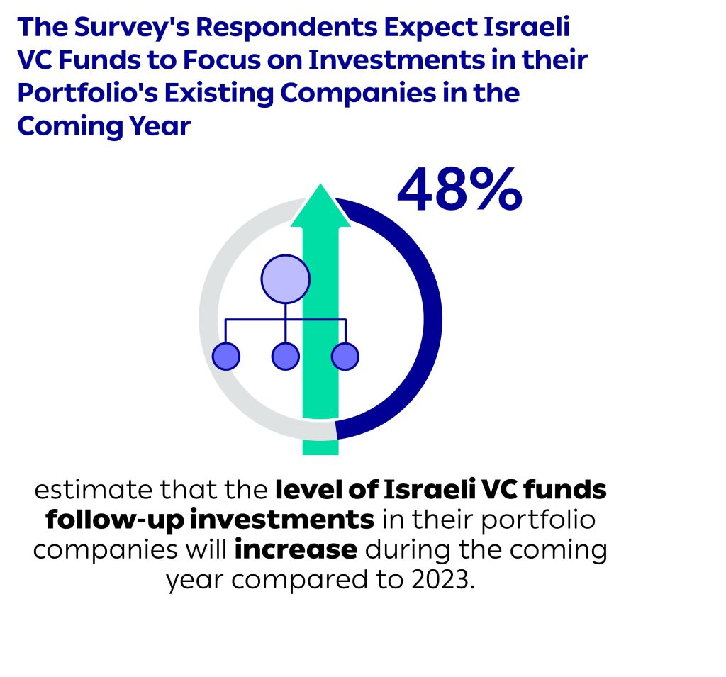 One of the significant factors that will influence the development of startups in the coming years, in terms of the resources at their disposal and their future technological and business directions, is the venture capital funds operating in Israel. As noted, these funds – both local and foreign – invest in startups in various fields and stages.4For more details on the activity of venture capital funds in Israel ,see the Innovation Authority’s publication on this subject in conjunction with KPMG ,IVC and the Gornitzky & Co legal firm. The venture capital funds operating in Israel were asked in the survey about their expectations as to the investment activity of funds in Israel and about the business activity of their portfolio companies. The survey’s results indicate several trends: