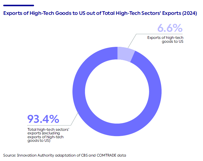 Analysis indicates that the total high-tech goods exports to the United States stood at around USD 5 billion in 2024 – about one quarter of Israel’s total high-tech goods exports
