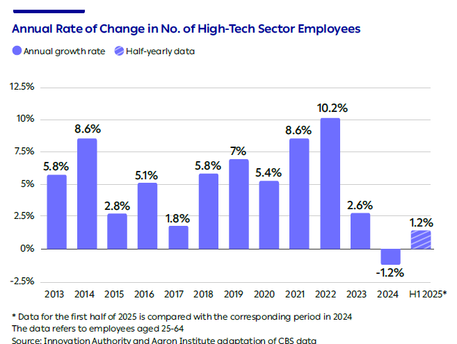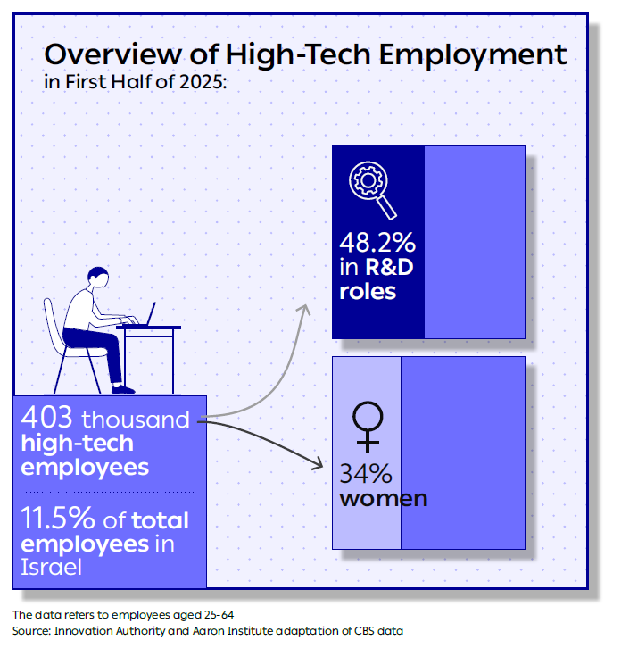 Of all high-tech employees in the first half of 2025, women accounted for 34%, and employees in R&D roles accounted for 48.2%.