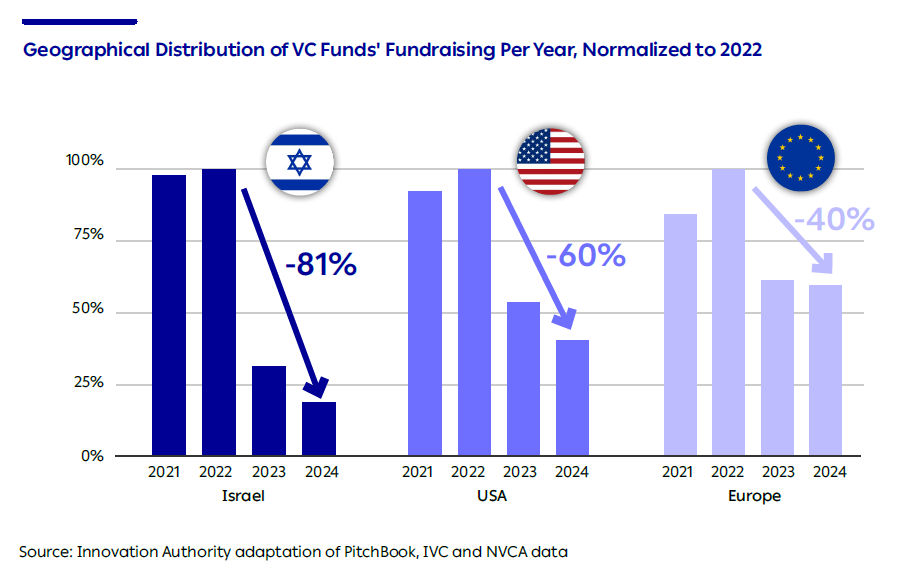 During the peak years of high-tech in 2021–2022, around 60 Israeli venture capital funds raised USD 6 billion each year.