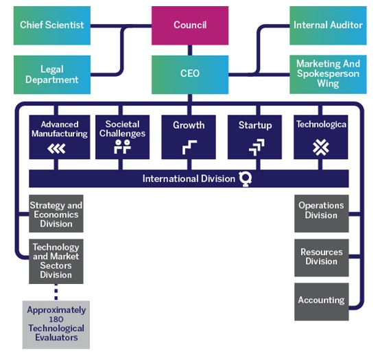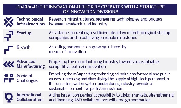 As is known, the Authority was set up on the basis of the Office of the Chief Scientist in the Ministry of Economy and Industry. The objective was to optimally fulfill the missions assigned to it by the R&D Law and to provide efficient and high-quality service to the Israeli innovation system. In order to do so, the Authority operates with a structure of Innovation Divisions (see Diagram 1) that allocate a cumulative budget of approximately NIS 1.6 billion each year. The Authority supports companies at all stages of their life and in all innovation sectors via a range of programs (see Diagram 2).
