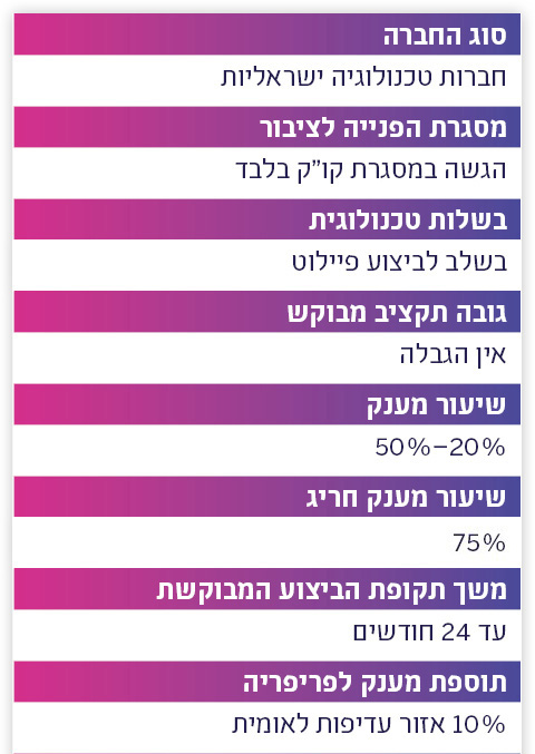 *רשות החדשנות מקבלת אך ורק בקשות שלמות ותקינות, המוגשות בצרוף כלל הטפסים המופיעים על פי תנאי מסלול ההטבה.