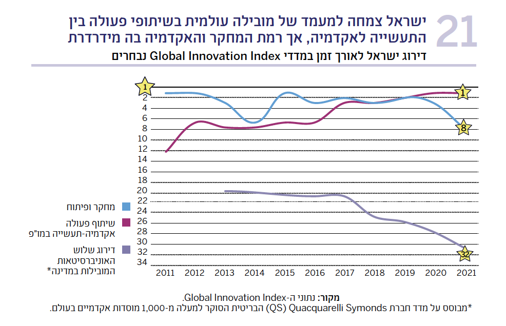זוהי מגמה ארוכת טווח, המצביעה על שחיקה משמעותית ברמת התחרותיות של האקדמיה הישראלית ועשויה להשפיע על פיתוחים עתידיים עליהם יישען ההיי-טק הישראלי בעשורים הקרובים.
