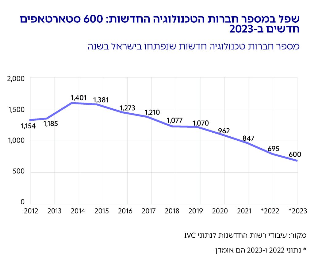כיוון ראשון הוא כל הקשור ליזמות טכנולוגית. מראשית ימיו, ההייטק הישראלי התבסס על חדשנות פורצת דרך בחברות צעירות שעוסקות בפיתוח טכנולוגיות בסיכון גבוה. סוגיה שתשפיע על עתיד הענף קשורה ליבול הסטארטאפים הישראלי. מאז 2015 יש מגמת ירידה בכמות הסטארטאפים החדשים הקמים מדי שנה. השאלה העולה בהקשר זה היא אם מוקמות מדי שנה ״מספיק״ חברות טכנולוגיה חדשות, או שיש איום לעתיד ה״סטארטאפ-ניישן״. לפי אומדן ראשוני, ב-2023 הוקמו כ-600 חברות בלבד, נתון שהוא תמרור אזהרה.2להרחבה בנושא הירידה בהקמת סטארטאפים, ראו את פרסום הרשות בנושא בשיתוף מכון RISE (לשעבר SNPI).