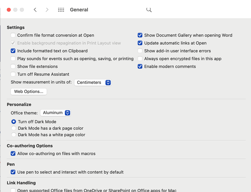 - במסך הבא יוצג חלון של הגדרות כלליות. יש לבחור את האופציה Turn off Dark mode